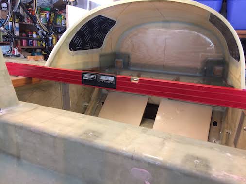 Before starting anything you need to make sure the fuselage and tables are level in all directions. The tables are are bondo'd to the fuselage side, center spar and to the floor so that it can't be bumped out of position.