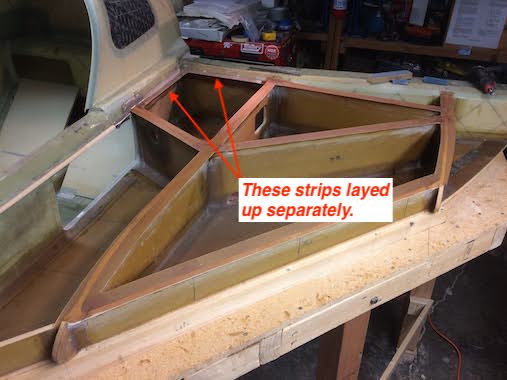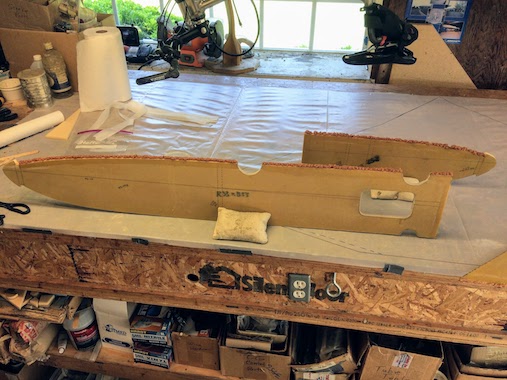 Here the inside of the bottom skin is glassed with 1 ply of BID at 45 degrees to the leading edge.