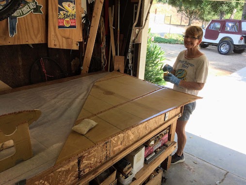 Everything is nice and shiny with a good coat of epoxy over the deck cloth.