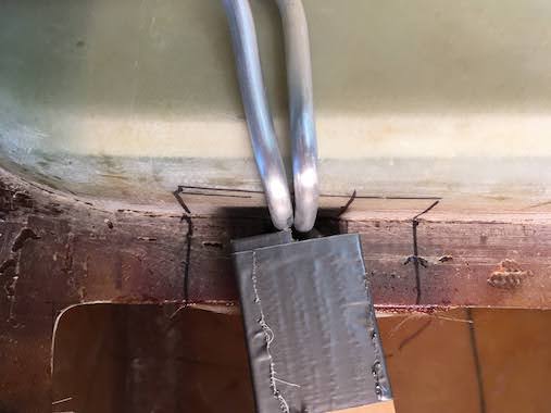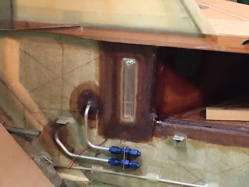 I had to make a cutout in the strip along the fuselage to accommodate the vent lines exiting the tank so I heavily floxed and glassed the underside to make a leak free penetration.