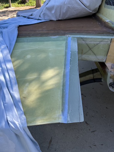 Here are the resulting wing root flanges, they will still get a ply of BID from the top of the wing to the flange. On the left side I leveled the 1/2" gap with flox.